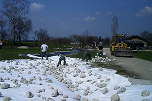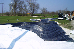 Der Arbeitsaufwand ein Schutzvlies zu verlegen ist